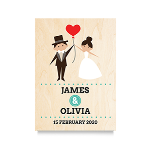 Remember one of the most special days of your life with one of our unique Wood Prints! Our Wedding Prints can be made as either a 12mm Wood Wall Print or a 4mm Wood Stand Print. Choose one of our characters and add your name and wedding date or use your own personal photo.